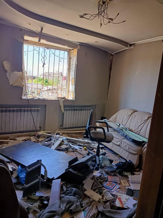 Еще через несколько дней во время очередного обстрела мы, как обычно, прятались у себя в коридоре, но звуки казались особенно сильными, весь дом содрогался. У нас буквально во дворе стояли российские танки, которые вели огонь по «Азовстали», и мы решили, что стены дрожат из-за этого. Но оказалось, что это были прямые попадания в наш дом. Начался пожар, жильцы запаниковали. И вдруг в подъезд ворвались кадыровцы. В нашу квартиру на первом этаже заскочили трое и в грубой форме потребовали, чтобы мы немедленно вышли. Даже не дали времени собраться. Мы успели схватить рюкзак с документами и сумку с фотоаппаратом, которые стояли у входа, какую-то одежду и два термоса с водой. Далеко идти мы не могли, племянница еле передвигалась на двух палках. Поэтому мы просто перешли в подвал соседнего дома (где провели следующие две недели).