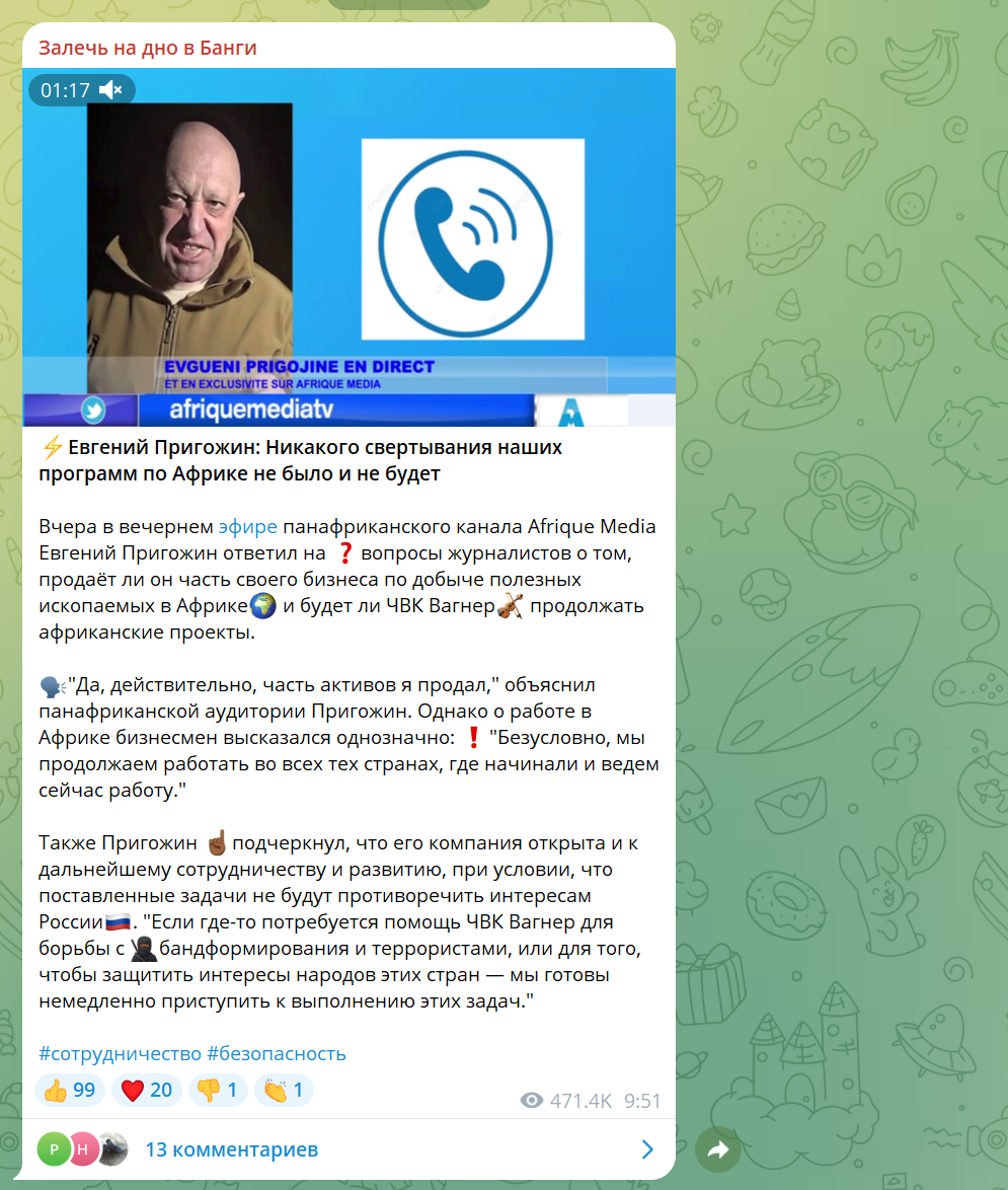 Как освещала деятельность Пригожина сетка африканских Telegram-каналов
