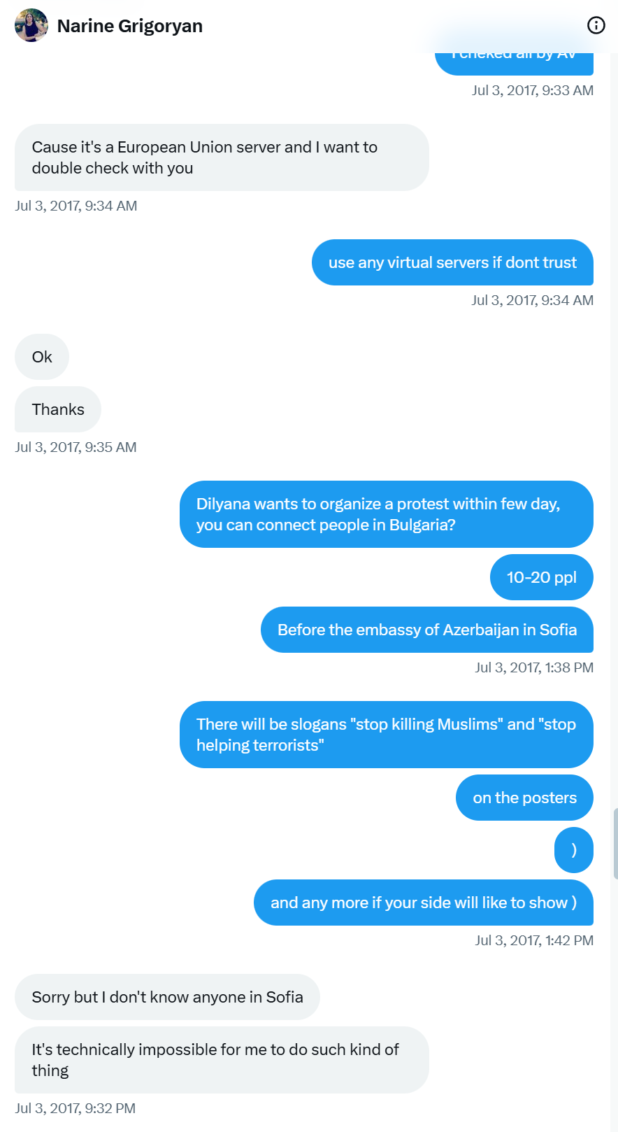 Из переписок с этого аккаунта становится ясно, что целью ГРУ был не только информационный вброс, но организация уличных акций напротив болгарского посольства с целью оказания политического давления (правда, организовать это тоже не получилось) и контроля военного экспорта из Болгарии. Напомним, ранее в этих же целях коллеги Стигала по 29155 отравили «Новичком» болгарского экспортера оружия Емельяна Гебрева.