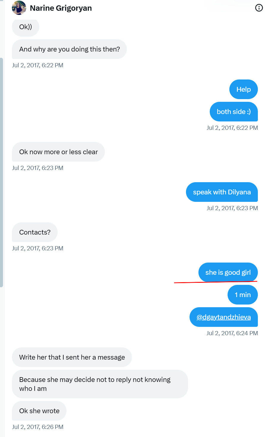 Стигалу также удалось привлечь к распространению информации болгарскую журналистку Диляну Гайтанджиеву. Для легитимации вброса информации он в 2017 году создал Twitter-аккаунт Anonymous Bulgaria, через который слил взломанную переписку посольства Азербайджана. Он якобы «знакомится» с Диляной в твиттере, но судя по тому, что он сразу начинает перенаправлять других журналистов и блогеров к Диляне, утверждая, что она «хорошая девочка», очевидно, что к тому моменту у них уже была предварительная договоренность и устойчивые отношения доверия.