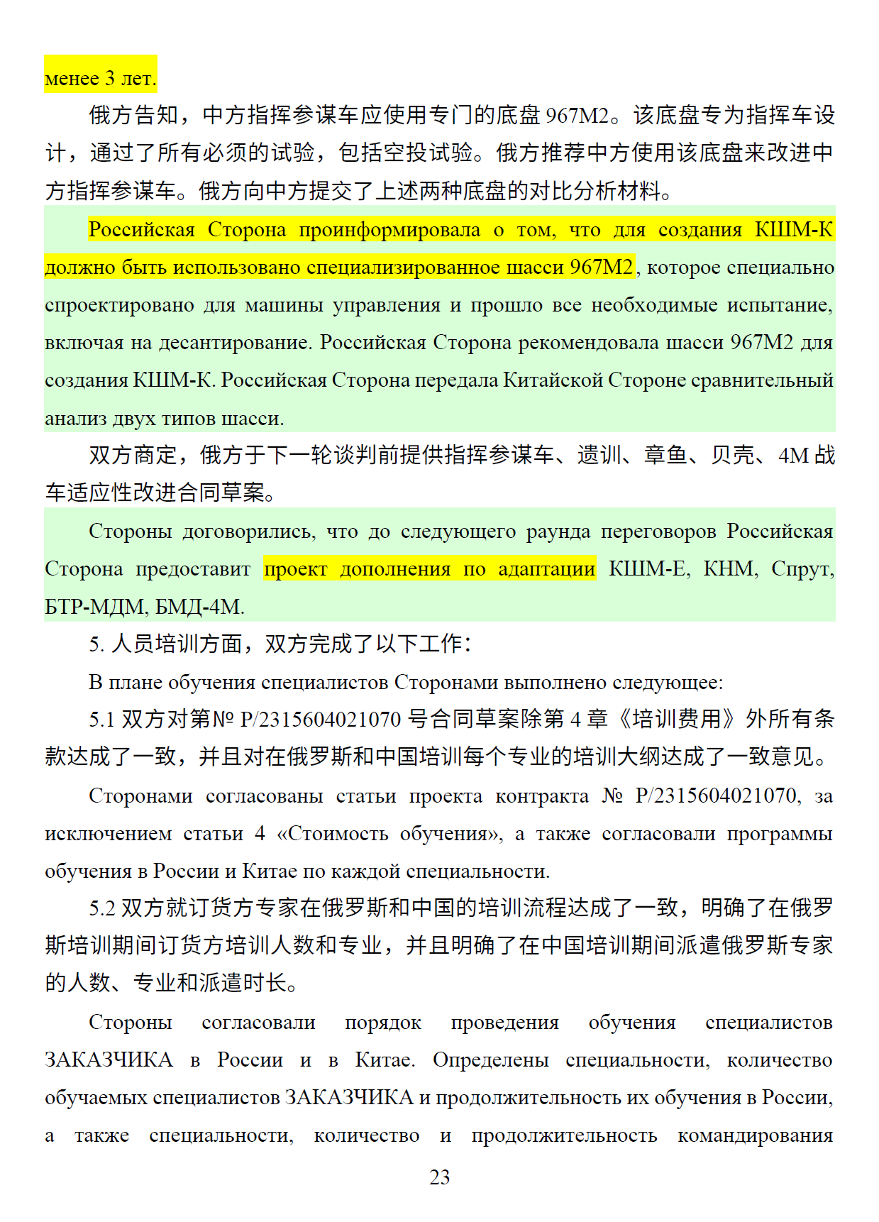 The Insider через свои источники смог обнаружить другие документы на эту тему, в том числе планы подготовки китайских специалистов. Для 60 военных НОАК запланировано 152 часа лекций, 130 часов групповых и 150 часов практических занятий. Занятия, в частности, предполагают изучение радиостанций Р-187BE, Р-188Е (УКУС-Е), InmarSat-BGAN Explorer 727. Согласно документам, тренажеры и компьютерные классы для подготовки китайцев должны были сделать на АО «Тулаточмаш».