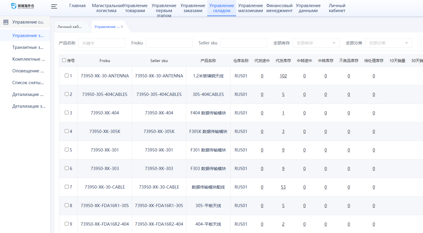 Скриншоты запасов товара на московском складе, отправленные Xingkai Technology