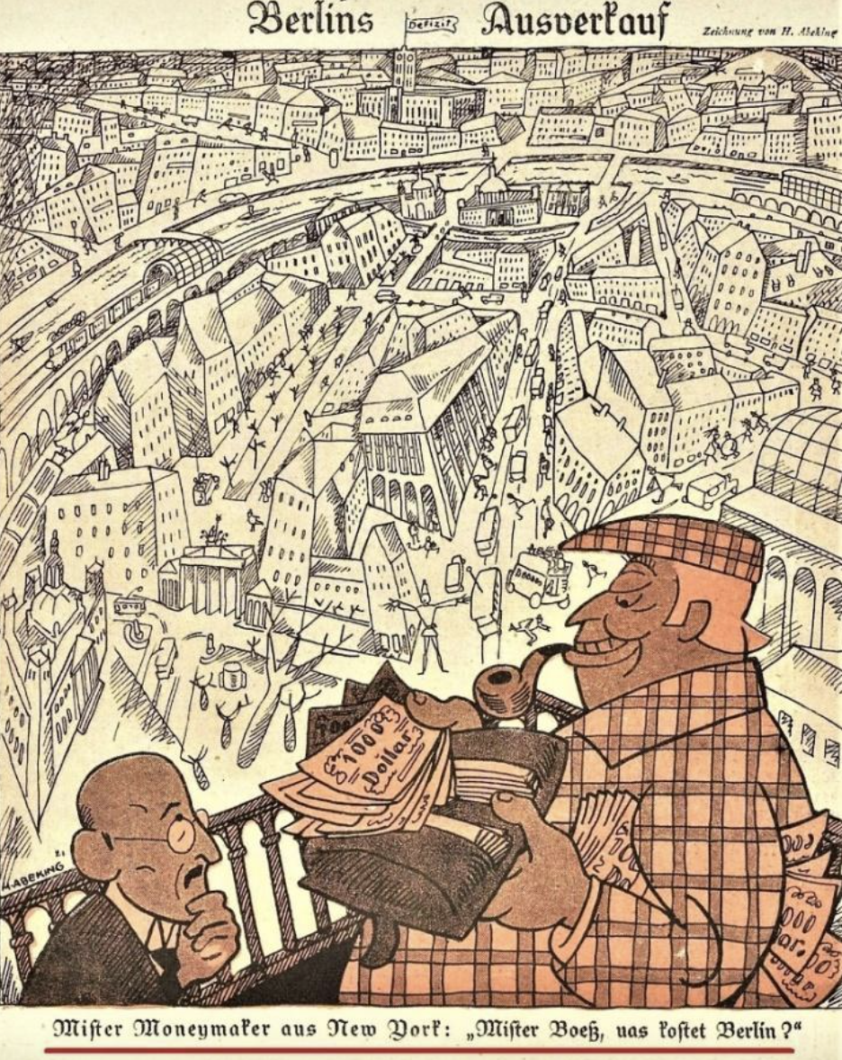 На этом фоне особенно сильное раздражение вызывала так называемая «распродажа Берлина»: прибывающие в город иностранцы не просто занимали жилые помещения, но, имея валюту, за бесценок скупали дома у разорившихся немцев. Поучаствовали в феерической «распродаже Германии» и русские эмигранты, некоторым из которых посчастливилось иметь достаточно валюты и деловой хватки.