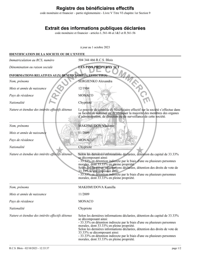 Именно во Франции поселились семьи Махмудова и Бокарева. The Insider изучил их имения, а заодно нашел новых родственников российских олигархов. Сын Махмудова Джахангир, согласно коммерческому реестру Франции, является бенефициарным владельцем компании Les Tesnieres Property SCI. На нее записаны земли в регионе Солонь.