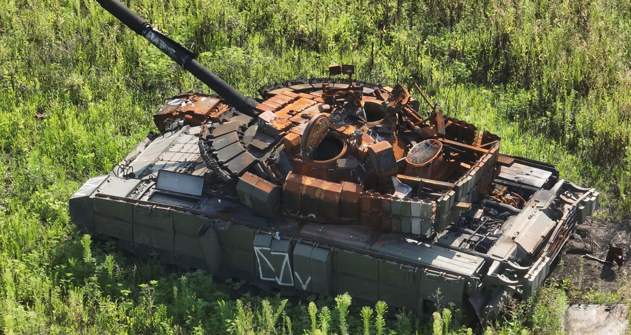 Публикуются фотографии подбитой под Макаровкой российской военной техники. На снимках, как сообщает военнослужащий морской пехоты ВСУ, пишущий в соцсети X (бывший Twitter) под ником Kriegsforscher, можно заметить танки Т-80БВМ и Т-80БВ 40-й отдельной бригады морской пехоты РФ.