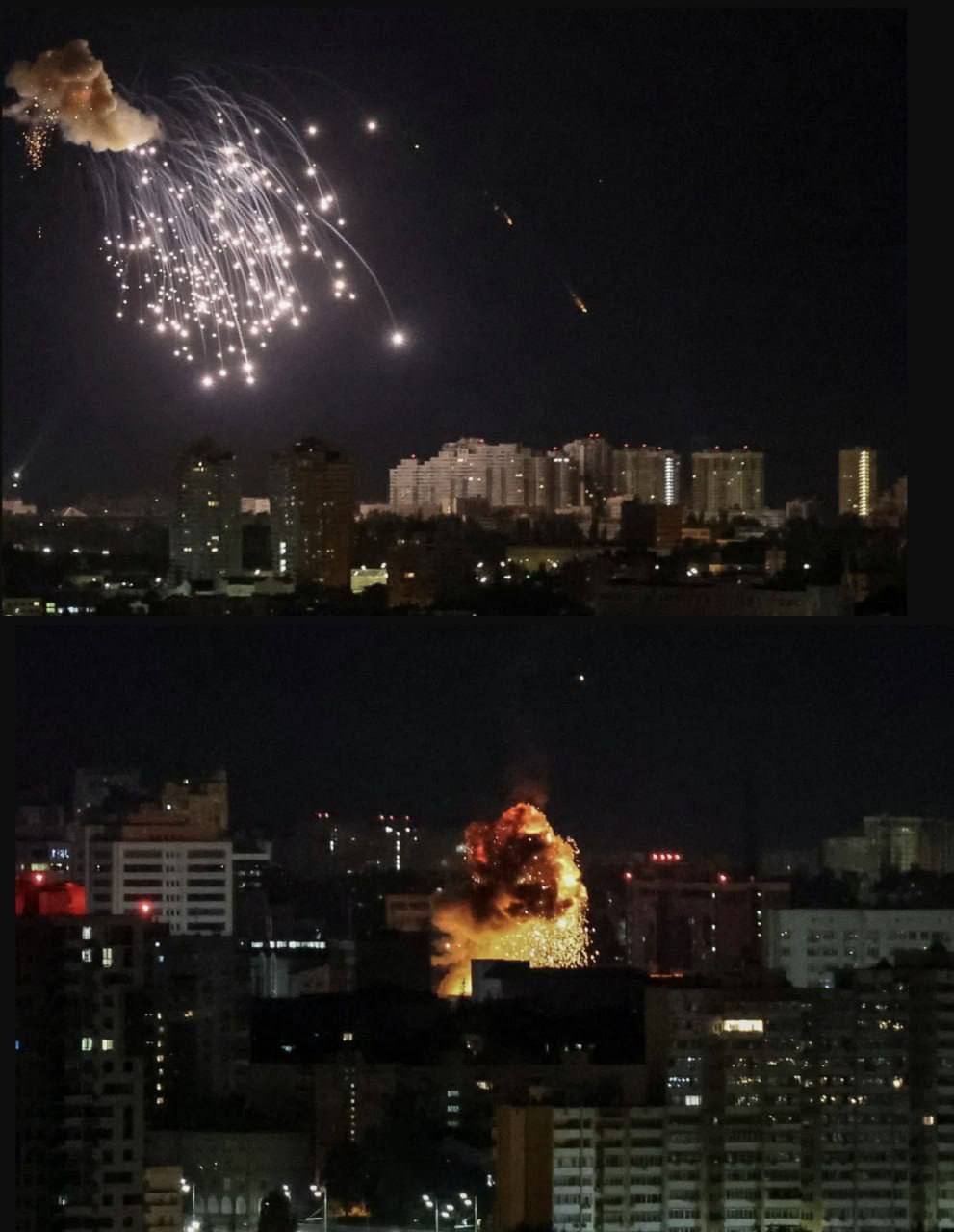 «Военный Осведомитель» утверждает, что «Шахеды» поразили воинский арсенал в Ракитнянском районеКиевской области, ссылаясь на возгорания, зафиксированные спутниками НАСА.