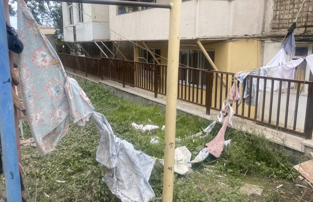 Результаты обстрела жилого дома в центре Степанакерта. Фото: twitter.com/Gegham_Artsakh
