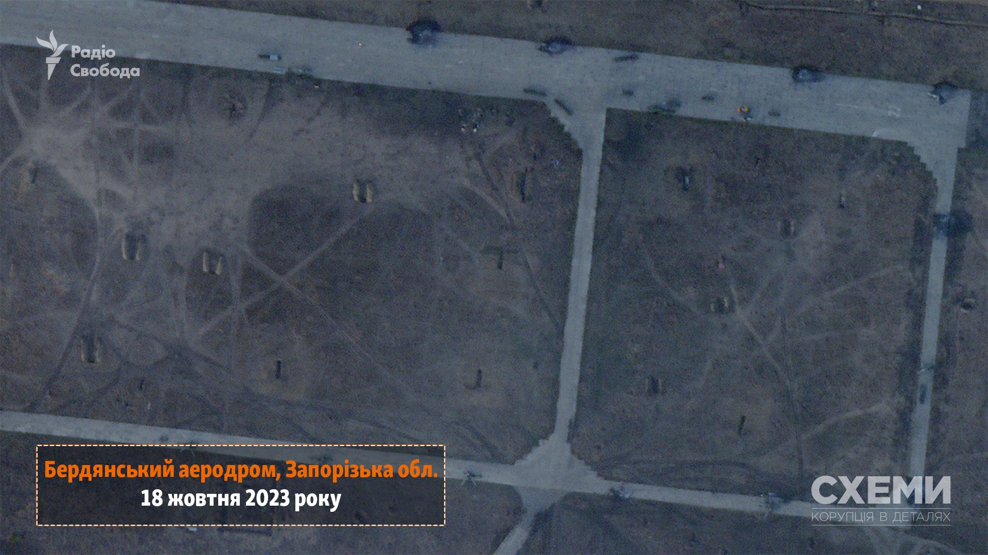 Опубликованы спутниковые снимки аэродрома в Бердянске после удара американскими ракетами ATACMS. На снимках, которые публикуют «Схемы», видно 5–7 участков со следами открытого горения. По всей видимости, там стояли вертолеты.