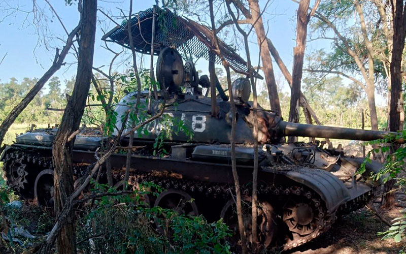 Российские военные в попытке защитить танки от FPV-дронов начали устанавливать Г-образный козырек. Фото одного из таких «мангалов» на танке Т-55 расходится в соцсетях.
