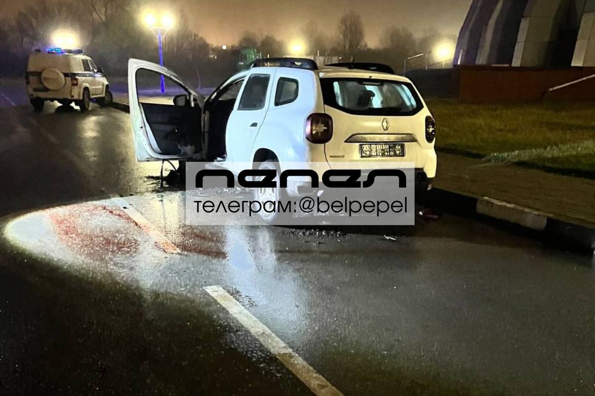 Белгородский канал «Пепел» опубликовал видео и фото с места взрыва вечером 23 ноября. На них виден поврежденный белый Renault Duster без номеров и кровь на асфальте, скорая помощь и полицейская машина. По данным канала, мужчина скончался в машине скорой помощи по дороге в больницу.