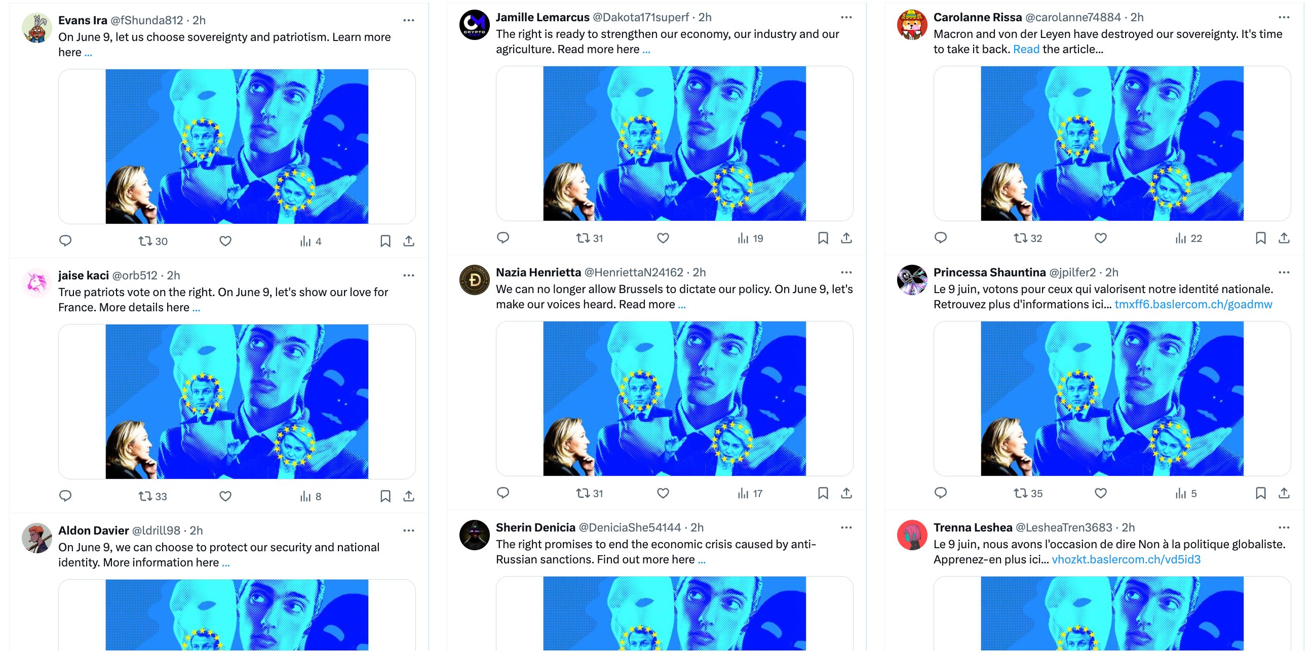 Аналитики пришли к выводу, что такого уровня охвата сети ботов удалось достичь благодаря текстам, сгенерированным искусственным интеллектом. Сеть публиковала разные тексты на одну и ту же тему, с одним и тем же содержанием, что позволило обойти защиту алгоритмов сети Twitter.